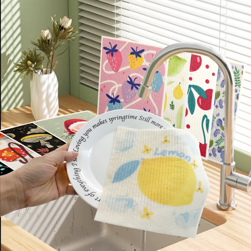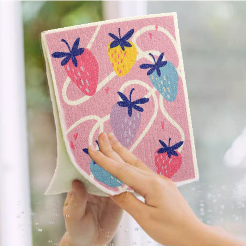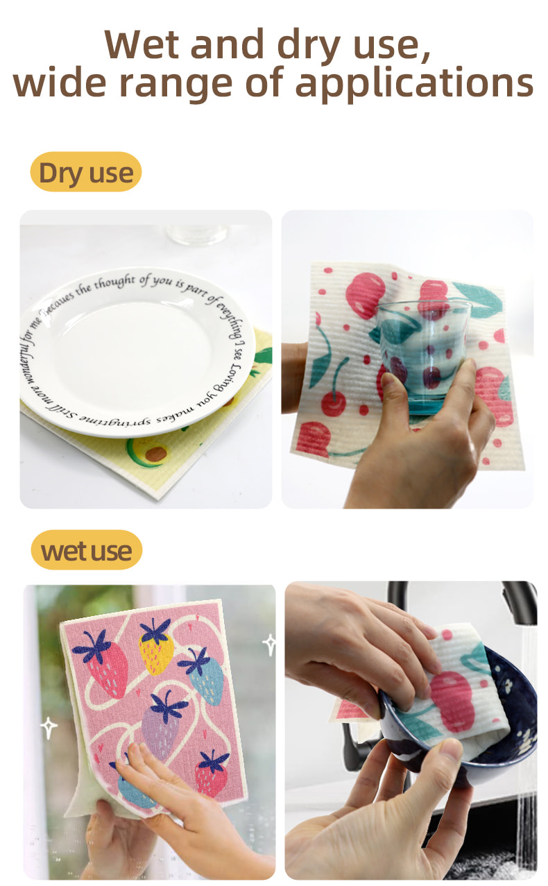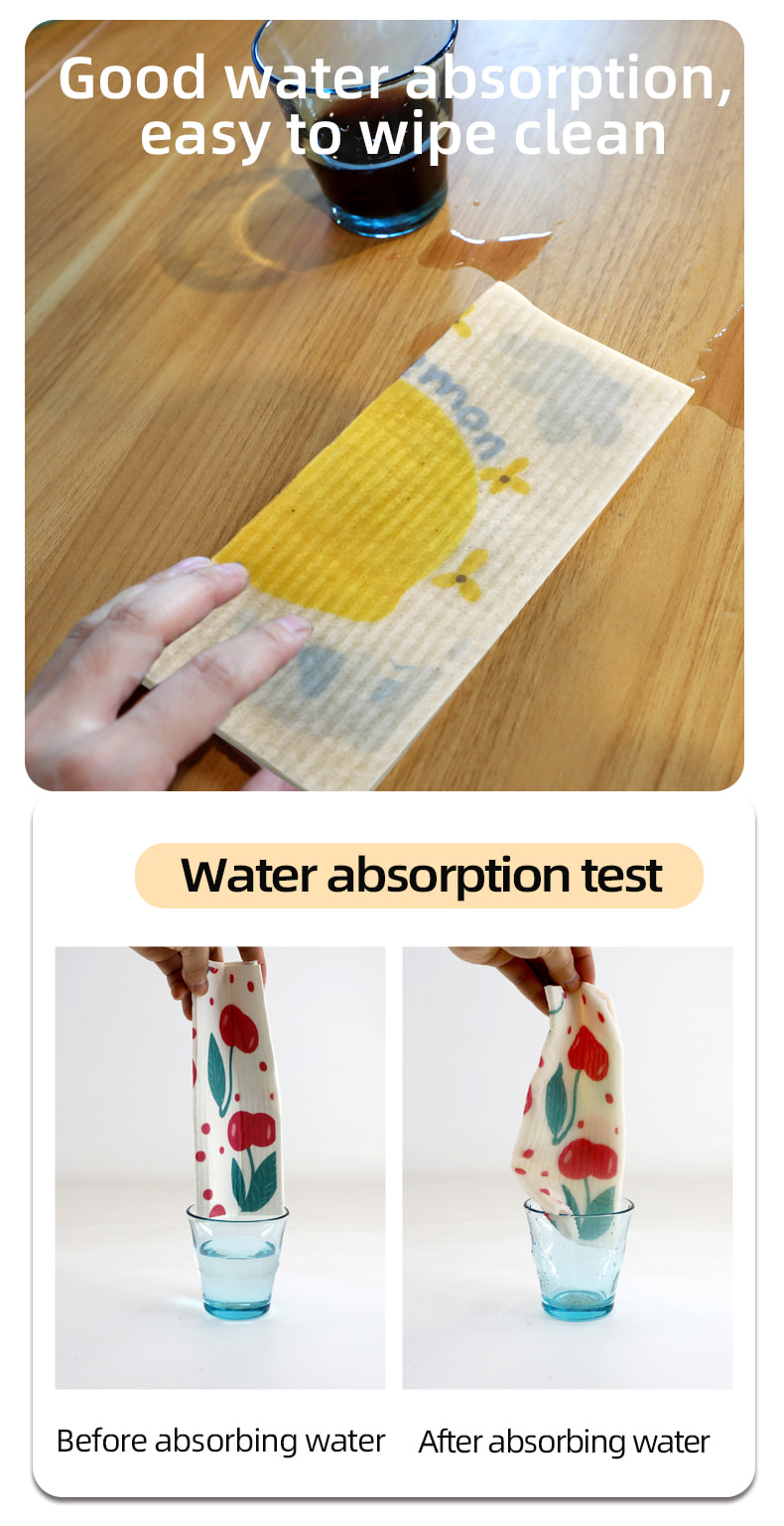 Luonnollinen selluloosasienikangas, hyvä pehmeys, hyvä veden imukyky, helppo puhdistaa, ympäristöystävällinen ja hajoava, kestävä, kuiva ja märkä, ei pelkää öljyä