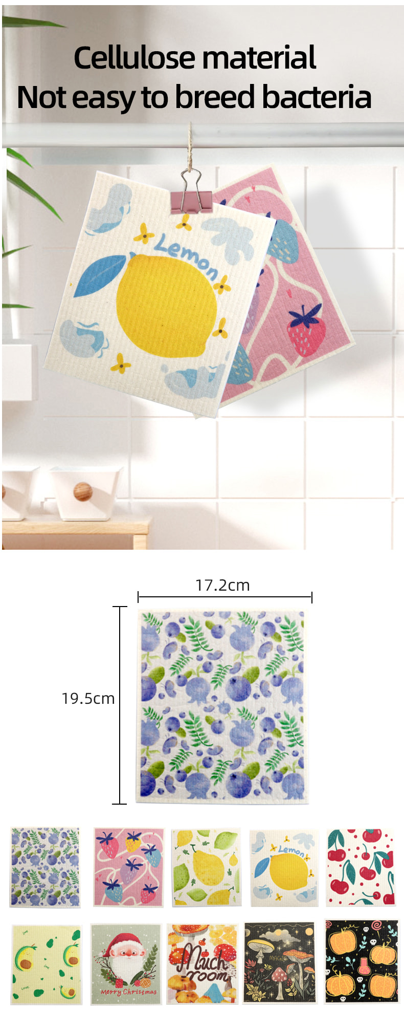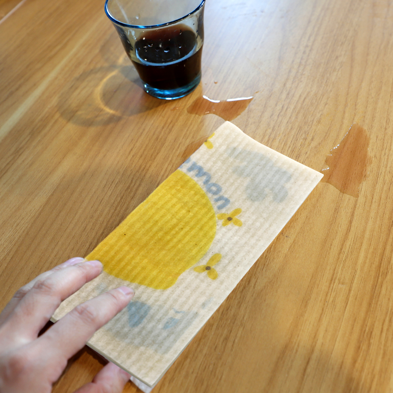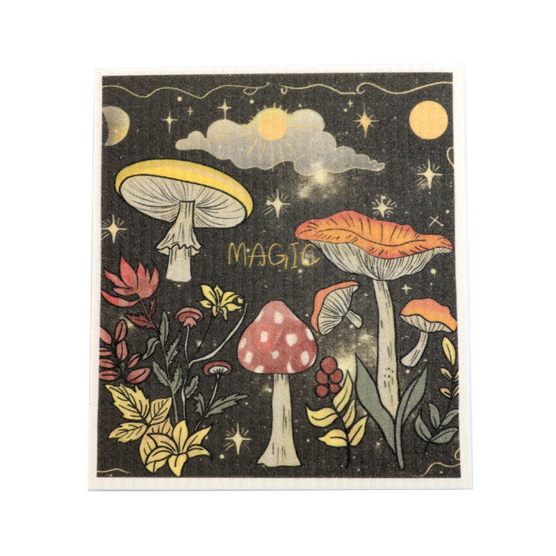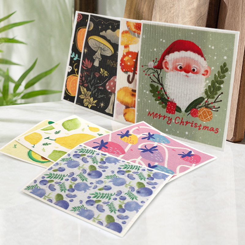 Luonnollinen selluloosasienikangas, hyvä pehmeys, hyvä veden imukyky, helppo puhdistaa, ympäristöystävällinen ja hajoava, kestävä, kuiva ja märkä, ei pelkää öljyä
