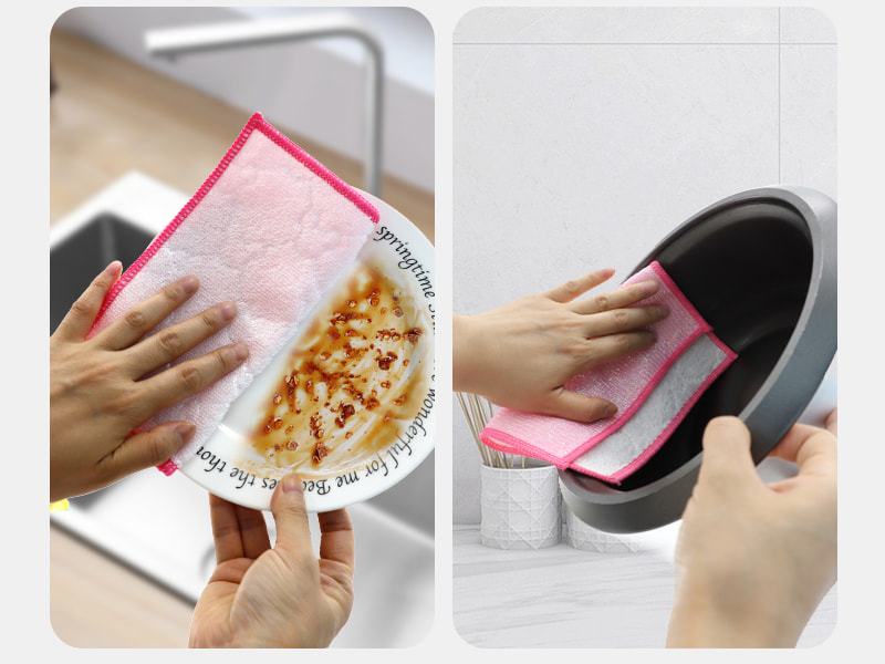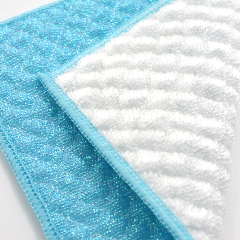 Värillinen silkki bambukuidun hankausliina, toinen puoli on värikäs puhdistusliina, jolla on vahva raapimiskyky, ja toinen puoli on bambukuiturätti, joka täyttää kaksi toimintoa kaavinta ja hankaamalla toisella puolella; Se on öljytön ja siinä on vahva veden imeytyminen. Se on valmistettu värikkäästä silkistä, jossa on korkea ulkonäkö ja Zou-käsittely pinnalla, mikä tekee värikkäästä silkkipuhdistusliinasta, jolla on vahva raapivuus, voimakkaampi kitkavoima, mutta se ei vahingoita keittoastioita; Sillä on hyvä puhdistusvaikutus ilman öljyn poistamista.
