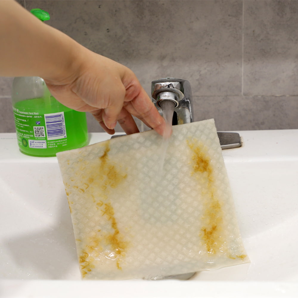Helppo puhdistaa: Verrattuna perinteisten sienien huokoiseen rakenteeseen, joka on altis kerääntymään likaa ja likaa, puumassapuuvillakuidut eivät pidä kiinni tahroja ja hajuja.